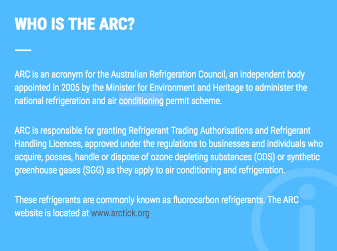 Australian Refrigeration Council (ARC) Authorised No: AU 00711